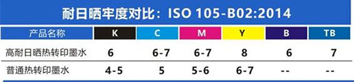 這四種不同性能的分散墨水,可以滿足客戶不同要求的行業應用。一般的要求,采用熱轉印墨水即可;對耐色遷移牢度要求較高的,可以使用耐色遷移分散墨水;對日曬牢度要求較高的,可以使用高日曬牢度分散墨水;更高的品質和色牢度要求,則可以選用高溫分散墨水,色牢度整體和傳統印花產品一樣,具有最高的耐色遷移、高日曬等色牢度,滿足服裝面料和家紡、墻布等行業的最高要求。