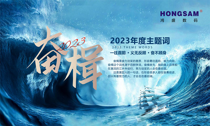 在鴻盛數碼公司,我們也非常注重團隊協作和奮進精神。因此,我們選擇了“奮楫”作為公司2023年的主題詞。奮楫,就是眾人齊心協力,共同努力,不斷向前,最終取得勝利的意思。同樣希望鴻盛數碼的嘉人們能夠堅定方向,保持團隊合作,始終堅持 “科學,誠信,超越,環保”的企業核心價值觀,推動公司環保噴墨業務不斷向前發展。