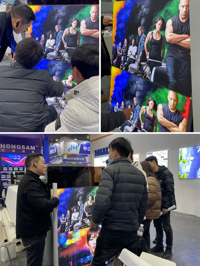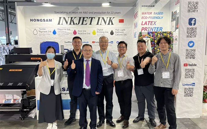 與其他品牌相比,鴻捷水性環保乳膠方案在多介質應用、打印效果以及性價比方面擁有顯著的優勢,深受歐洲客戶的歡迎。展會期間,甚至有多家同行朋友蒞臨鴻盛展位進行技術交流,對鴻捷水性乳膠方案表示了極大的興趣和認可。