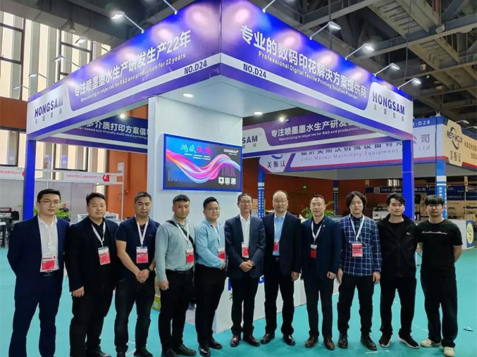 在國內展會上也能看到很多設備廠家在用鴻盛的墨水做設備展示,以4月11日柯橋展會為例,鴻盛數碼的“捷特絲®”紡織涂料墨水在此次設備商展示中占比60%,高溫分散直噴是設備廠家角力的新領域,高溫分散直噴是目前數碼印花領域最新的業務增長點,鴻盛數碼高溫分散直噴墨水在此展會設備廠家展示方案中占比100%。