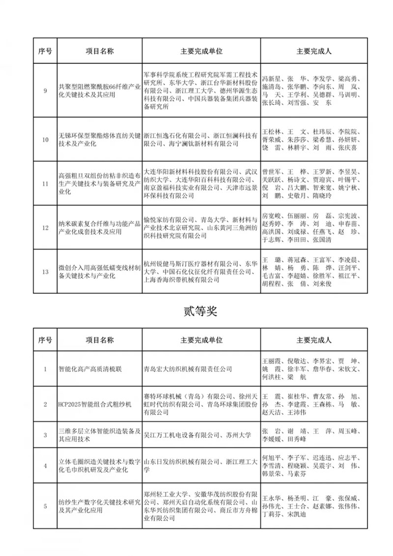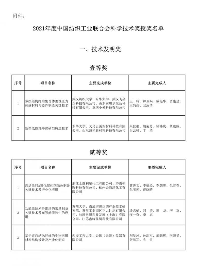 2021年,中國(guó)紡織工業(yè)聯(lián)合會(huì)受理的技術(shù)發(fā)明獎(jiǎng)和科技進(jìn)步獎(jiǎng)申報(bào)項(xiàng)目,要求是2016 年以來通過地市級(jí)以上政府相關(guān)部門或中國(guó)紡織工業(yè)聯(lián)合會(huì)組織鑒定、驗(yàn)收的項(xiàng)目,技術(shù)發(fā)明和科技進(jìn)步項(xiàng)目至少經(jīng)過一年以上的產(chǎn)業(yè)化應(yīng)用。