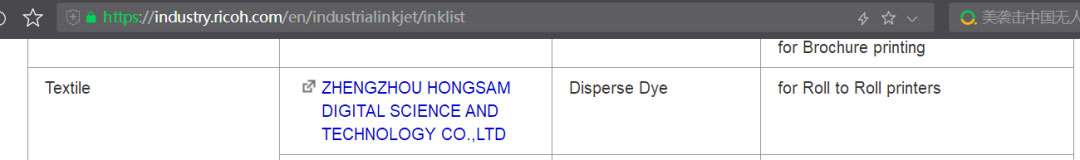 鴻盛數(shù)碼高溫分散墨水經(jīng)過(guò)嚴(yán)格的全面測(cè)試,順利通過(guò)理光噴頭的苛刻測(cè)試,成為中國(guó)唯一一家通過(guò)理光官方測(cè)試的高溫分散墨水廠家。2023年01月14日,理光官網(wǎng)公布了此消息,這也一定程度上展示了鴻盛數(shù)碼墨水與噴頭匹配的安全性和兼容性,進(jìn)一步提升了鴻盛數(shù)碼在國(guó)際的影響力。