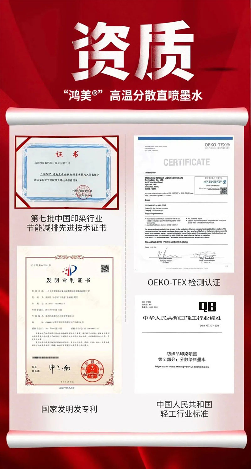 此次的測(cè)試成功,也給還在觀望的設(shè)備廠商打消了顧慮,從墨水的流暢性及兼容性來(lái)講,是完全達(dá)到官方的要求。從實(shí)際應(yīng)用中,鴻盛數(shù)碼高溫分散直噴染料墨水已成功應(yīng)用于多種工業(yè)噴頭。