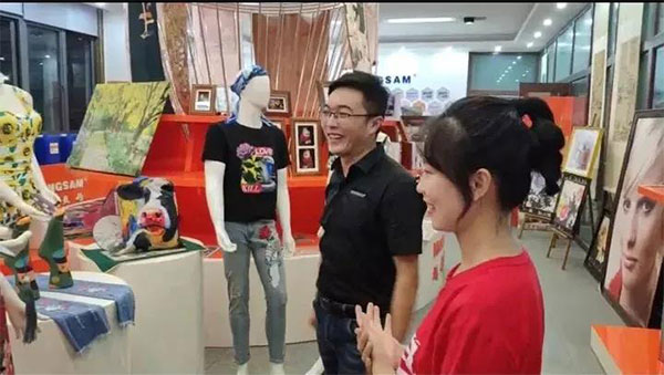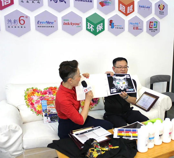 現(xiàn)場不僅對我們此次發(fā)布的白墨的特點(diǎn)做了簡單的介紹,而且現(xiàn)場展示了涂料直噴的濕打工藝,打印效果震撼。