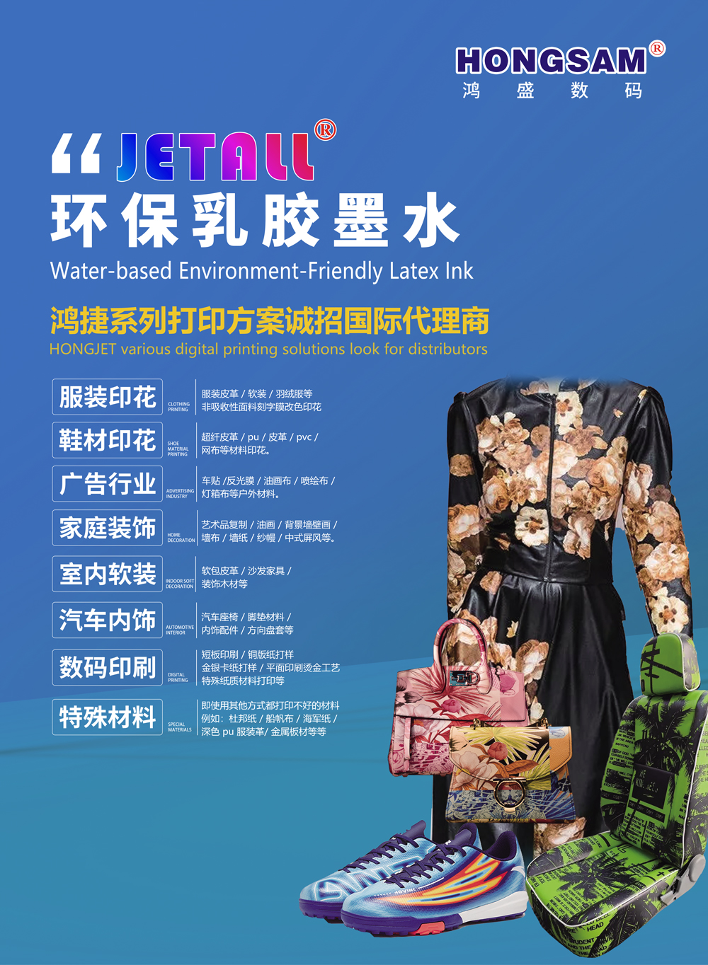 跨越邊界,探索無限可能——屆時(shí)鴻盛數(shù)碼將攜具有革命性創(chuàng)新意義的JETALL®水性環(huán)保乳膠墨水打印方案亮相本次盛會(huì),JETALL®水性環(huán)保乳膠墨水打印方案采用純水性環(huán)保工藝,應(yīng)用領(lǐng)域廣泛、不限材料類型,可謂是突破行業(yè)應(yīng)用領(lǐng)域,滿足了更多應(yīng)用場(chǎng)景的需求,同時(shí)又能夠根據(jù)客戶的實(shí)際應(yīng)用情況,提供個(gè)性化的定制方案。