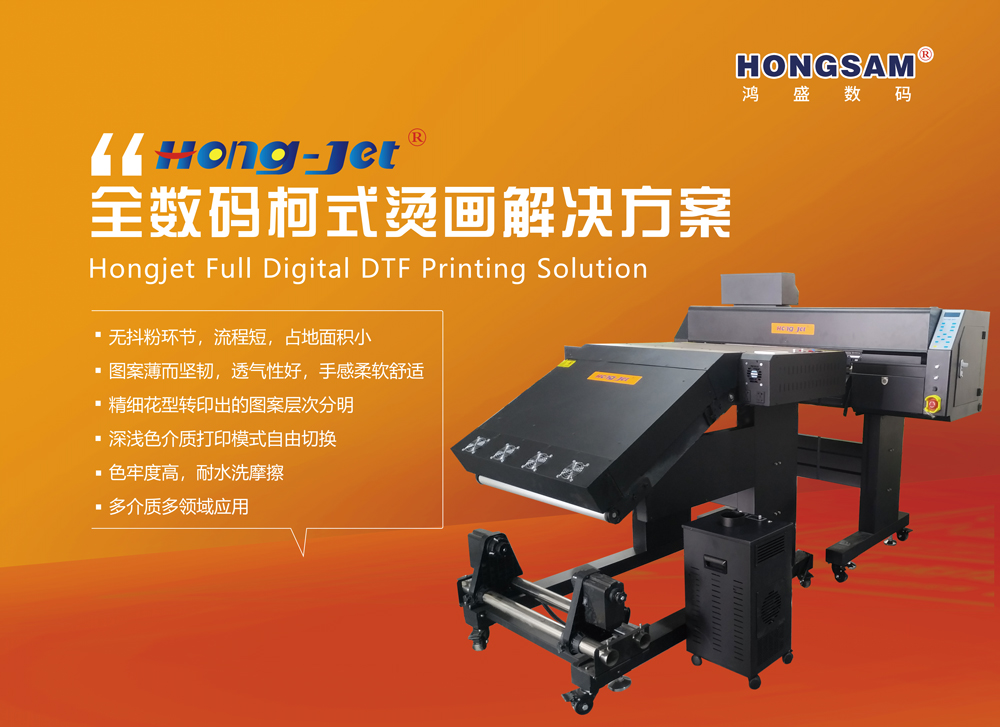 鴻捷全數(shù)碼柯式燙畫解決方案生產(chǎn)操作簡單,適用材料廣,手感軟,牢度好,適合轉(zhuǎn)印溫度可選擇區(qū)間大,產(chǎn)品質(zhì)量容易控制,成品率高,噪音小,占地小。是基于市面上現(xiàn)有的數(shù)碼印花轉(zhuǎn)印技術(shù)的又一次新的變革,是一種轉(zhuǎn)印效果更好,用途更廣泛,更環(huán)保性的解決方案。目前已在服裝服飾,箱包鞋材,家紡家裝、建筑材料等行業(yè)進(jìn)行應(yīng)用。