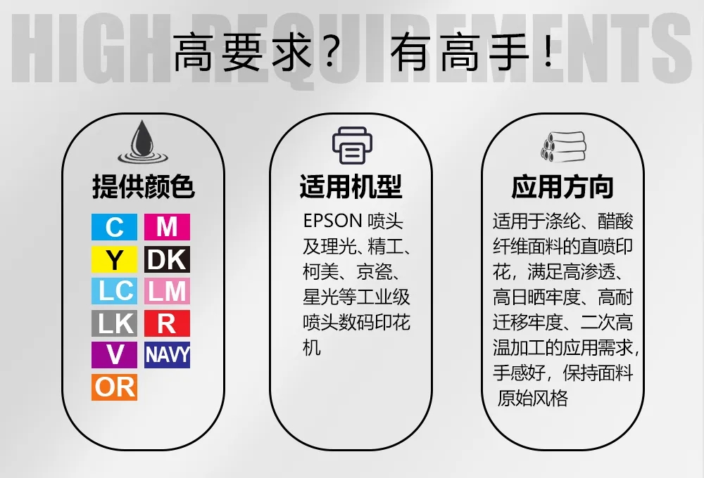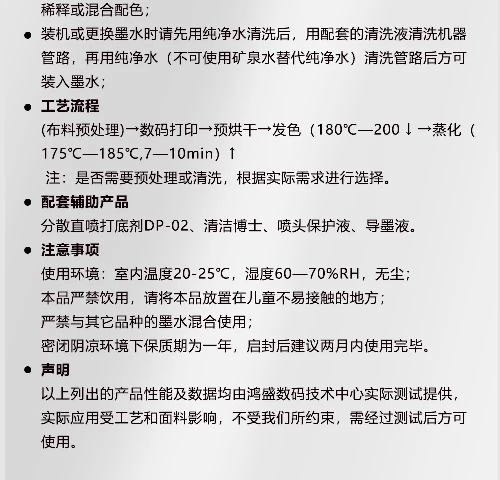 其實鴻盛早在2016年已經提出此款高溫分散直噴墨水,也有很多設備廠家上機測試,才有了我們下面的總結(獨特的優(yōu)勢)