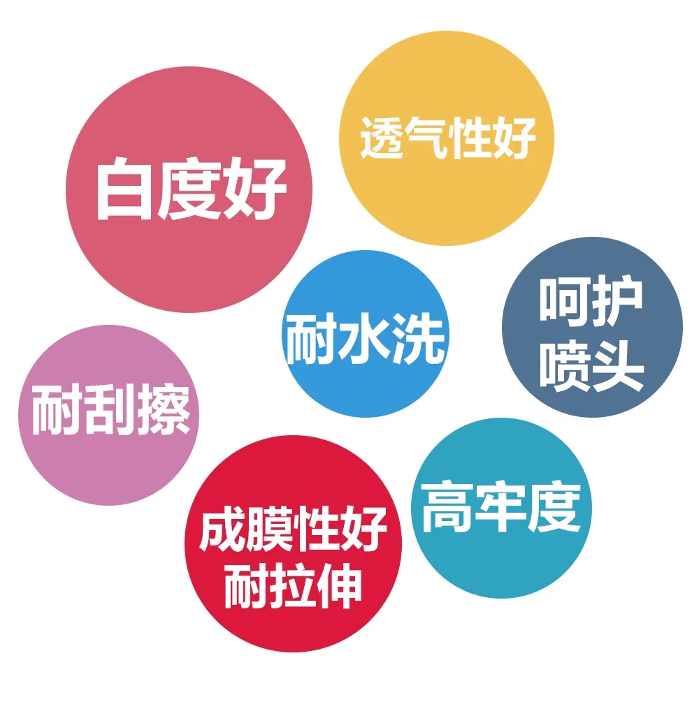 一些廠家的白色涂料墨水,甚至是進口白墨,印花后在服裝材料表面成膜耐拉伸性很差,經過拉伸出現皸裂,露底,不符合服裝行業的功能要求;