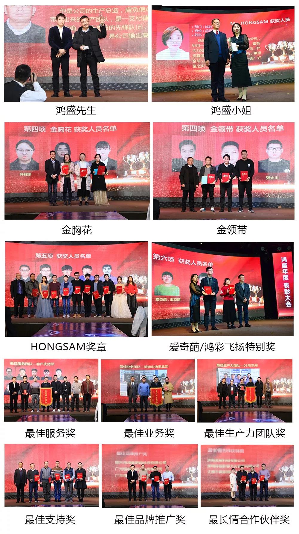 回首2019,表彰過去一年里辛勤的工作者,在表彰大會上評選出優的工作者,也是為激勵大家更好地拼搏。Mr.HONGSAM 、Ms.HONGSAM、金胸花、金領帶、鴻盛獎章、佳服務團隊、佳生產力團隊