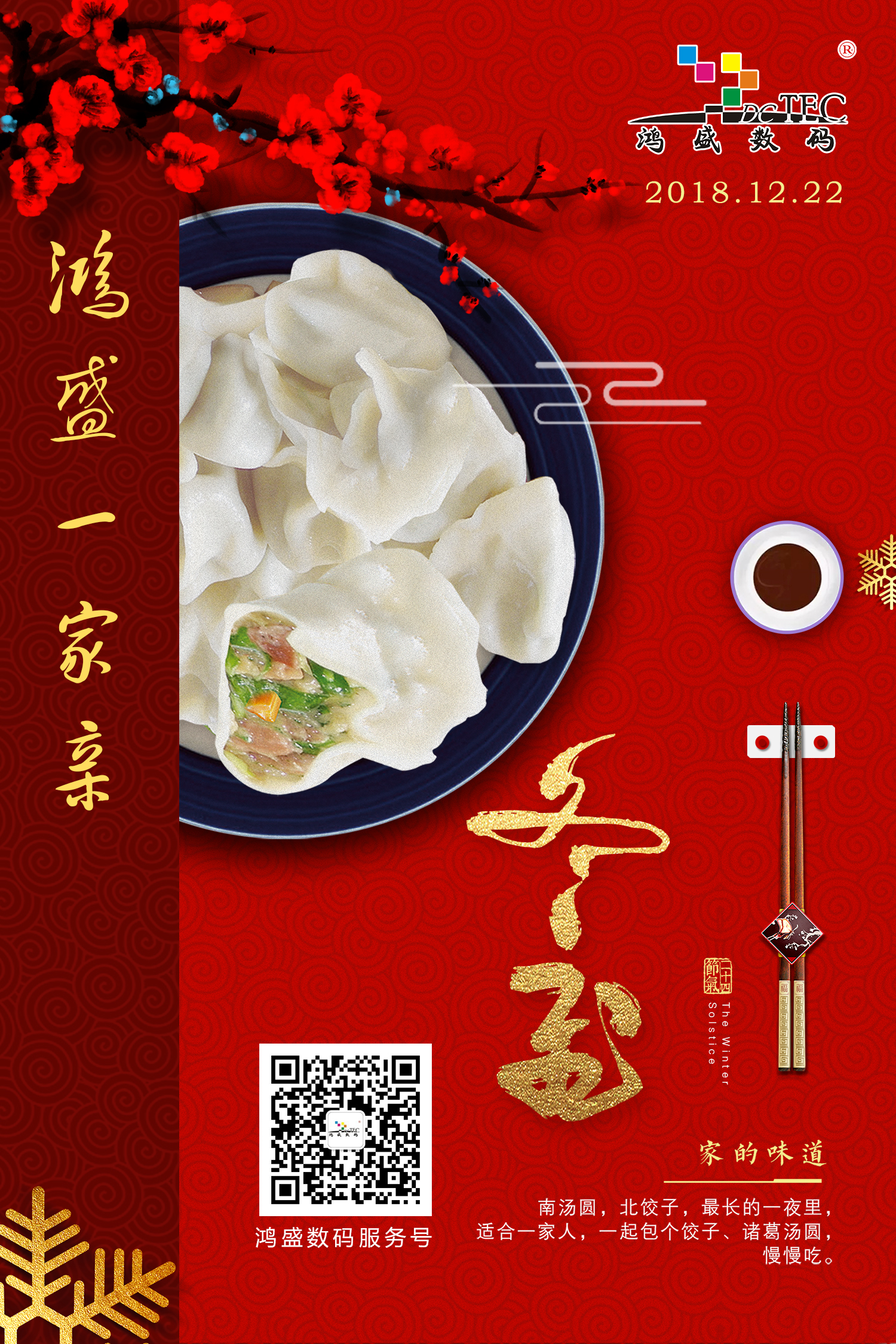 2018年12月21日,鴻盛數碼一年一度的冬至包餃子活動如約而至。屋外寒冷異常,屋內熱鬧非凡。一場盛大的餃子宴,溫暖了整個冬天!