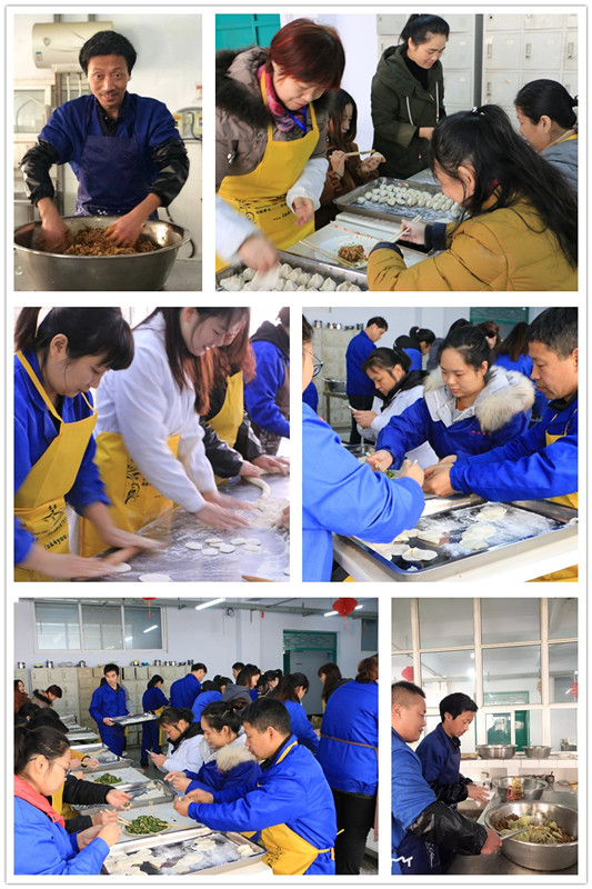 一大早,各部門的包餃子能手紛紛帶著“家伙事兒”聚集在活動現場。大家八仙過海,各顯神通,和面、拌餡、搟皮、包餃子,個個動作嫻熟,忙的不亦樂乎。大家一邊干活一邊嘮著家常,有說有笑,其樂融融,整個場面洋溢著濃濃的歡樂氣息。