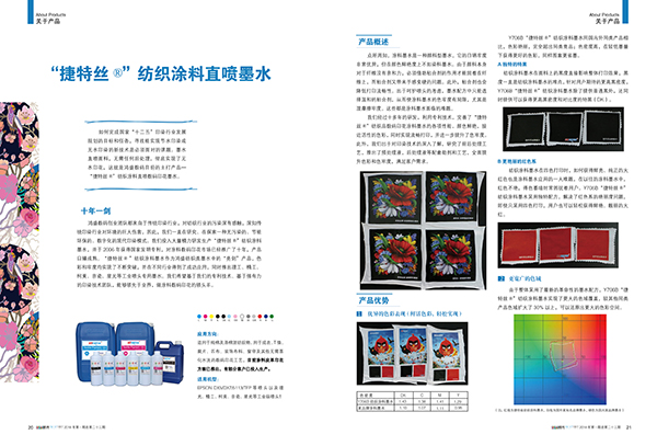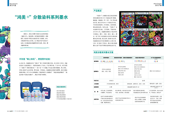 鴻盛數(shù)碼——專注17年的噴墨墨水生產(chǎn)商,本期《噴墨時代》主要介紹了紡織四款(涂料 分散 活性 酸性)熱銷產(chǎn)品和鴻盛新推出的佳能pro系列染料/顏料墨水,文章針對產(chǎn)品的各項(xiàng)數(shù)據(jù)做了詳細(xì)說明....