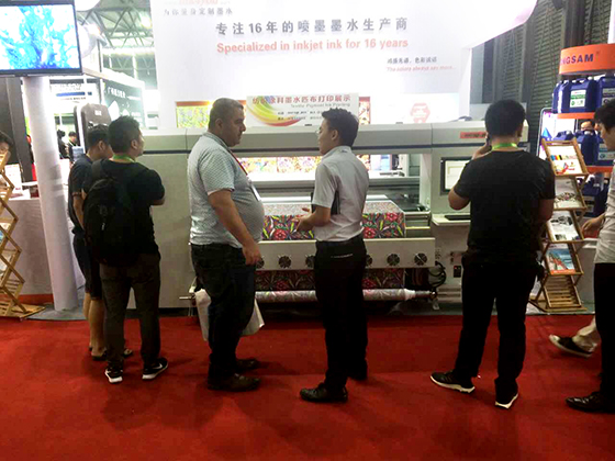 展會上,鴻盛數碼接受了眾多客戶的詢問,尤其是我們新推出的“鴻美”HF型分散直噴墨水(免水洗)。目前鴻盛針對不同面料數碼印花的客戶,考慮其印花方式、烘焙、蒸化水洗排污能力的不同,可提供各種牢度要求的數碼印花方案。