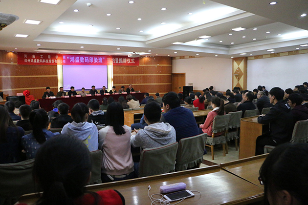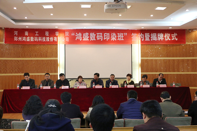 2017年3月29日,鄭州鴻盛數(shù)碼科技股份有限公司與河南工程學(xué)院聯(lián)合創(chuàng)辦的“數(shù)碼印花班開班簽約暨揭牌儀式”在河南工程學(xué)院隆重舉行,雙方以培養(yǎng)數(shù)碼印花實(shí)用型人才為目的,通過企業(yè)與院校的優(yōu)勢互補(bǔ)、資源共享,通過理論加實(shí)踐的授課方式,讓學(xué)生畢業(yè)時成為受社會和數(shù)碼印花行業(yè)歡迎的人才。