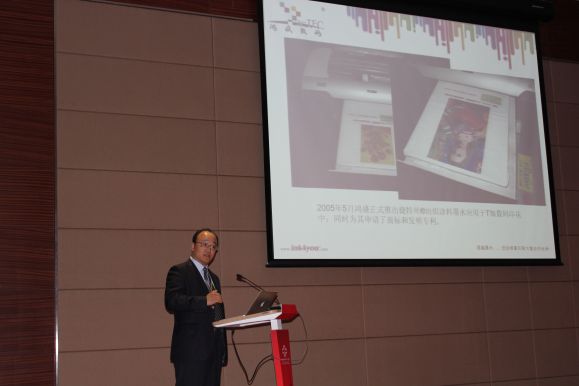 2016年3月8日,鴻盛數碼印花事業部總經理田志榮應邀參加2016國際噴墨聯盟(IJA)峰會,并發表技術演講《捷特絲涂料無水數碼印花解決方案》。