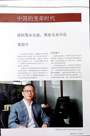 2016年4月,《數碼紡織》“行業觀點”欄目刊出了對鴻盛數碼董事長秦國勝先生的專訪《中國的變革時代——涂料墨水先驅,聚焦無水印花》。