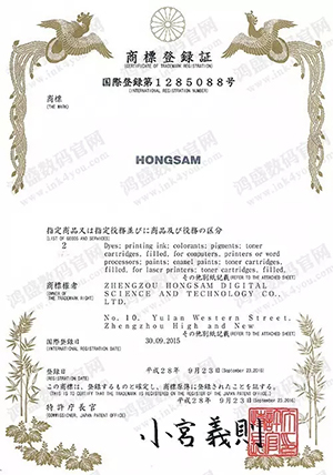 2016年9月28日,鴻盛數碼英文商標“HONGSAM”在日本注冊成功。