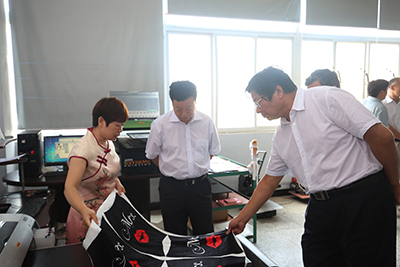 高新區管委會、河南工程學院領導參觀了鴻盛數碼展廳及技術中心,對鴻盛數碼噴墨技術及應用表示贊賞。