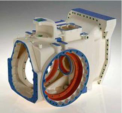 這些打印技術和功能性墨水的出現,使得打印任何立體造型的物件成為可能。下面圖片展示的是美國Z Corp. 公司基于麻省理工學院開發的3DP?打印技術,通過3D打印機和功能性墨水打印的容器模型、3D地圖以及發動機零件樣品和運動靴鞋底造型。