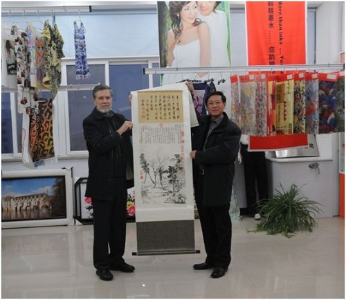 Dr.Nicholas Hellmuth臨行前,董事長秦國勝先生贈(zèng)送禮物并合影留念