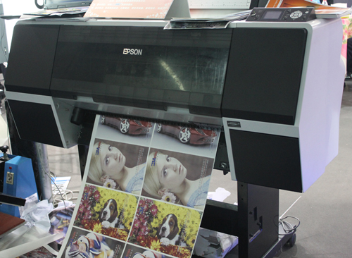 EPSON 7908使用“JETALL®”水性*能顏料墨水銅版紙打樣方案,此套方案適用于印刷廠、廣告設(shè)計公司、菲林輸出公司等。EPSON 7908配合色彩鮮艷、附著力強(qiáng)、摩擦牢度高的“JETALL®”水性*能顏料墨水,利用專業(yè)色彩管理軟件,即可在銅版紙直接噴墨打樣。展會現(xiàn)場打印出來的圖文色彩艷麗、光澤度好,再加上此套方案操作簡單,使用方便,獲得展會現(xiàn)場眾多商家的青睞。