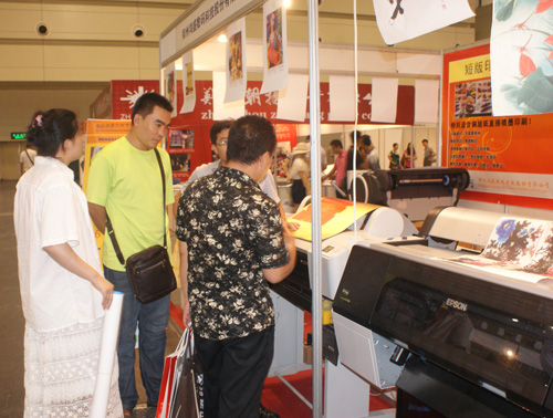 在銅版紙上直接噴墨打印一度成為行業難題。此次展會,鴻盛數碼在現場展示了EPSON 7908使用“JETALL®”水性*能顏料墨水銅版紙打樣方案,此套方案適用于印刷廠、廣告設計公司、菲林輸出公司等。EPSON 7908配合色彩鮮艷、附著力強、摩擦牢度高的“JETALL®”水性*能顏料墨水,利用專業色彩管理軟件,在現場為觀眾展示了銅版紙直接噴墨打樣。展會現場打印出來的圖文色彩艷麗、光澤度好,再加上此套方案操作簡單,使用方便,無數現場觀眾駐足觀看。