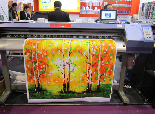 此次2013廣州國(guó)際廣告標(biāo)識(shí)展上,HJ-4165,高效產(chǎn)能與超高畫質(zhì)的結(jié)合,配合“鴻彩6®”四代顏料墨水打印純棉油畫布。HJ-4165采用新型第五代微壓電打印技術(shù),行業(yè)內(nèi)制造商THK品牌導(dǎo)軌,長(zhǎng)壽命、低噪音、高速性,且每種顏色配備有兩個(gè)大容量墨水盒,適合大批量高速生產(chǎn)?!傍櫜?®”第四代壓電大幅面顏料墨水作為新一代顏料墨水,采用了VM鮮艷紅色彩系統(tǒng),高密度黑色、牢度及廣泛的介質(zhì)適應(yīng)性,干燥較快流暢性好,尤其適合油畫藝術(shù)品復(fù)制。2013廣州國(guó)際廣告標(biāo)識(shí)展現(xiàn)場(chǎng),HJ-4165使用“鴻彩6®”四代顏料墨水,高精度復(fù)制油畫藝術(shù)品,細(xì)膩展現(xiàn)出藝術(shù)品原作的靈魂,演繹文化經(jīng)典,吸引了眾多國(guó)內(nèi)外參展觀眾的目光。