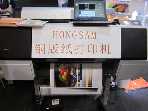 直接打印銅版紙,無(wú)需任何涂層,是“JETALL®”水性**顏料墨水為印刷行業(yè)用戶帶來(lái)的驚喜。2013廣州國(guó)際廣告標(biāo)識(shí)展,鴻盛數(shù)碼使用EPSON 7908配合“JETALL®”水性**顏料墨水,現(xiàn)場(chǎng)演繹“JETALL®”水性**顏料墨水在銅版紙上打印菜譜的傳奇?!癑ETALL®”水性**顏料墨水不含任何溶劑成分,完全水性,綠色環(huán)保,屬于功能性水性顏料墨水,應(yīng)用于EPSON微壓電打印頭,適用于銅版紙、PVC、膠片、紙質(zhì)壁紙、膠面墻紙等非吸收介質(zhì)的打印,尤其適用于無(wú)涂層介質(zhì)的打印,耐光、防水、不褪色;EPSON 7908配合“JETALL®”水性**顏料墨水,在展會(huì)現(xiàn)場(chǎng)打印展示了亮麗的菜譜圖案,展示了這個(gè)方案在要求色彩艷麗、方便更換的菜譜制作行業(yè)的強(qiáng)大優(yōu)勢(shì);水性**顏料墨水高度的耐摩擦牢度,優(yōu)異的色彩、光澤表現(xiàn)力,特別是水性環(huán)保的特性,也徹底征服了慕名而來(lái)觀看的參展觀眾。