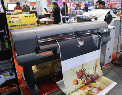 隨著人們對(duì)文化生活的追求變的越來(lái)越迫切,對(duì)藝術(shù)品的需求呈現(xiàn)出旺盛的態(tài)勢(shì),藝術(shù)品的復(fù)制技術(shù)也成為印刷行業(yè)的熱門(mén)話(huà)題。噴墨作為藝術(shù)品復(fù)制的重要手段,在近幾年的數(shù)字印刷中發(fā)揮著膠印無(wú)法取代和超越的重要作用。鴻盛適時(shí)推出的“鴻彩6®”顏料墨水打印油畫(huà)布滿(mǎn)足了行業(yè)客戶(hù)的需求。“鴻彩6®”第四代壓電大幅面顏料墨水作為新一代顏料墨水,采用了VM鮮艷紅色彩系統(tǒng),高密度黑色、牢度及廣泛的介質(zhì)適應(yīng)性,干燥較快流暢性好,尤其適合高端油畫(huà)藝術(shù)品復(fù)制。2013春季中原廣告展上,“鴻彩6®”顏料墨水借助Canon iPF8310在油畫(huà)布、絹絲上的色彩表現(xiàn),光鮮亮麗的色彩輸出,贏得在場(chǎng)觀(guān)眾的一致好評(píng)。