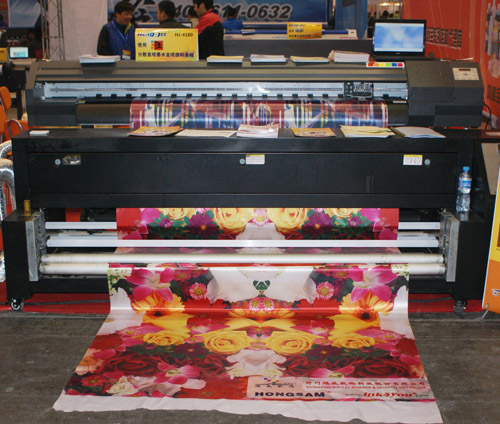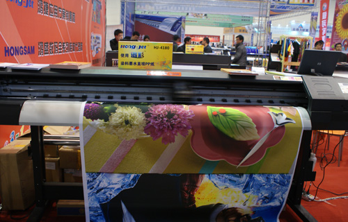 “旗幟王?”分散直噴墨水打印旗幟布方案在行業(yè)內(nèi)已然不陌生了,這套方案使用HJ-4180熱顯色設(shè)備制作旗幟條幅,配套具有優(yōu)異流暢性能的“旗幟王?”分散直噴墨水,能夠很好的滿(mǎn)足行業(yè)需求。2013春季中原廣告展,速度與精度結(jié)合、彰顯卓越品質(zhì)的HJ-4180,配合“旗幟王?”分散直噴墨水,現(xiàn)場(chǎng)打印大幅面旗幟布,鮮艷的色彩還原,高品質(zhì)色彩再現(xiàn),獲得了在場(chǎng)觀(guān)眾的一致好評(píng)。