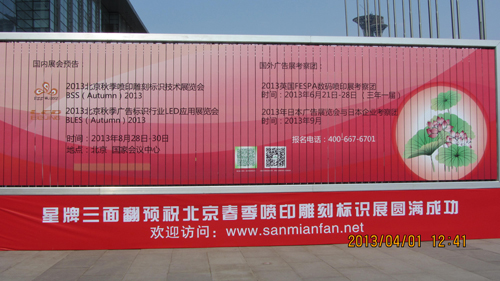 2013年4月2日上午九時,2013北京國際噴印雕刻標識技術展(簡稱“北京廣告展”,英文簡稱BSS 2013)在北京國家會議中心正式拉開帷幕!300余家參展商展示了噴繪、寫真、雕刻、標識、展具、標識、LED等七大類展品,總面積達3萬平方米。鴻盛數碼攜成熟完善的噴墨墨水應用解決方案隆重亮相此次北京廣告展,并為現場客戶展示了鴻盛在噴墨領域做出的創新開拓。
