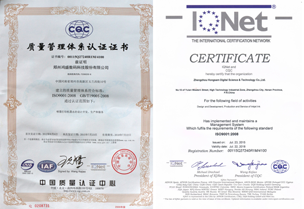 ISO9001:2008質(zhì)量體系標(biāo)準(zhǔn),是世界質(zhì)量管理知識和方法的精華。鴻盛數(shù)碼將繼續(xù)認(rèn)真貫徹體系要求,進(jìn)一步提高全員質(zhì)量意識,持續(xù)改進(jìn),穩(wěn)定產(chǎn)品質(zhì)量,提升顧客滿意度,為“成為世界知名的噴墨墨水研發(fā)生產(chǎn)商”而努力!