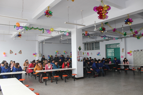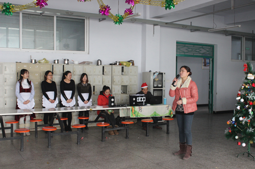 中午11點20分,總部所有鴻盛人被“請”到了員工餐廳。走進餐廳,映入眼簾的是一片歡樂溫馨的“圣誕場景”,再加上無比歡樂的圣誕音樂,讓本就好奇的大家更加期待將要開場的“圣誕Party”。