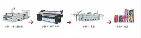 直噴工藝 : 布料預(yù)處理(分散直噴打底劑 DP-02 10-50%)→打印→烘干→發(fā)色(170-180℃ *3min)→成品。