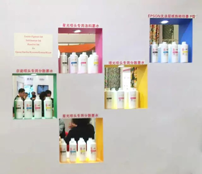 作為國內專業噴墨墨水生產商,鴻盛數碼現場為我們展示多款紡織品數碼印花專業墨水包括紡織涂料墨水、熱轉印墨水、活性墨水、酸性墨水等,目前鴻盛數碼已成功研發出各款墨水在EPSON、SPECTRA……等各種工業噴頭。