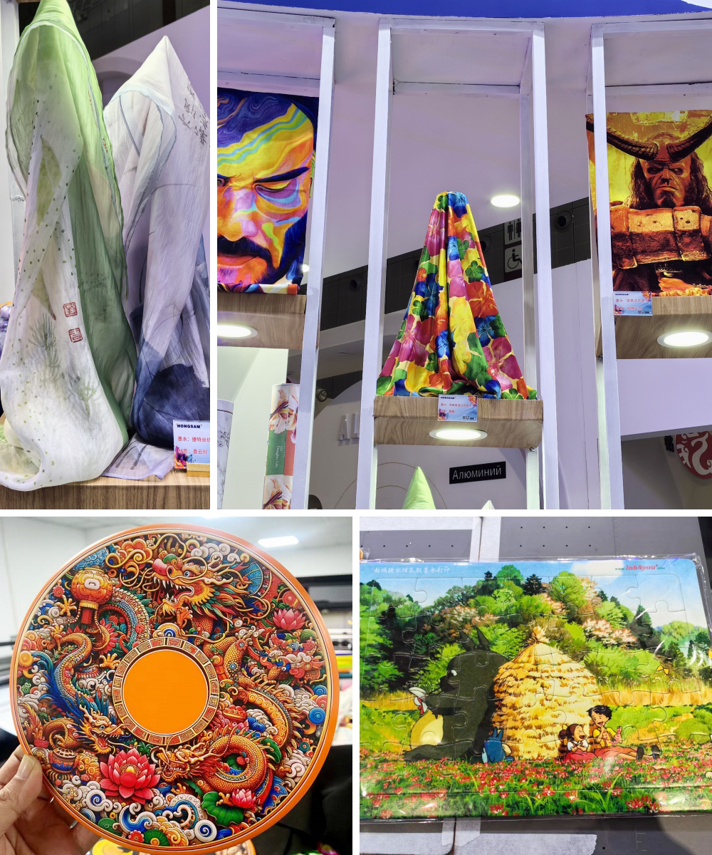 本次展會,鴻盛數碼展示了水性乳膠環保墨水打印方案、旗下全系列墨水(數碼印花系列:捷特絲紡織涂料墨水、鴻美分散染料墨水、銳美活性染料墨水、絲美特酸性染料墨水、鴻盛陽離子染料墨水,數碼影像系列:鴻彩6納米顏料墨水、EverNew高耐光染料墨水,數碼印刷系列:瓦楞紙/膠版紙/木紋紙/銅版紙專用墨水)、鴻捷全數碼柯氏燙畫解決方案,涵蓋了墨水、設備及打印方案,吸引了眾多觀眾駐足了解!