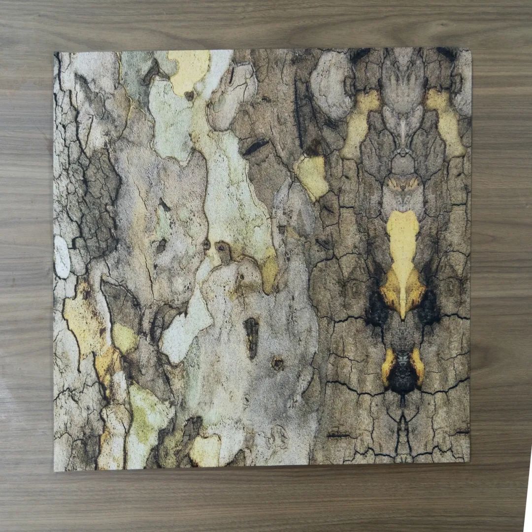 “歲月溝壑”是在軟木布上進行樹皮圖案的印花制作,軟木布是以天然樹皮“栓皮”為原料,不但具有自然古樸、粗獷的大自然之美,還具有吸音、隔振、保溫、無毒無味、不變形、不腐朽、不生蟲、柔軟可任意彎曲的特點。斑駁的樹皮,溝壑縱橫,象征著生命的堅韌不屈,充滿歲月滄桑感。樹皮圖案在軟木材質原有木質感紋理的呈現下,細膩逼真,奪人眼球。
