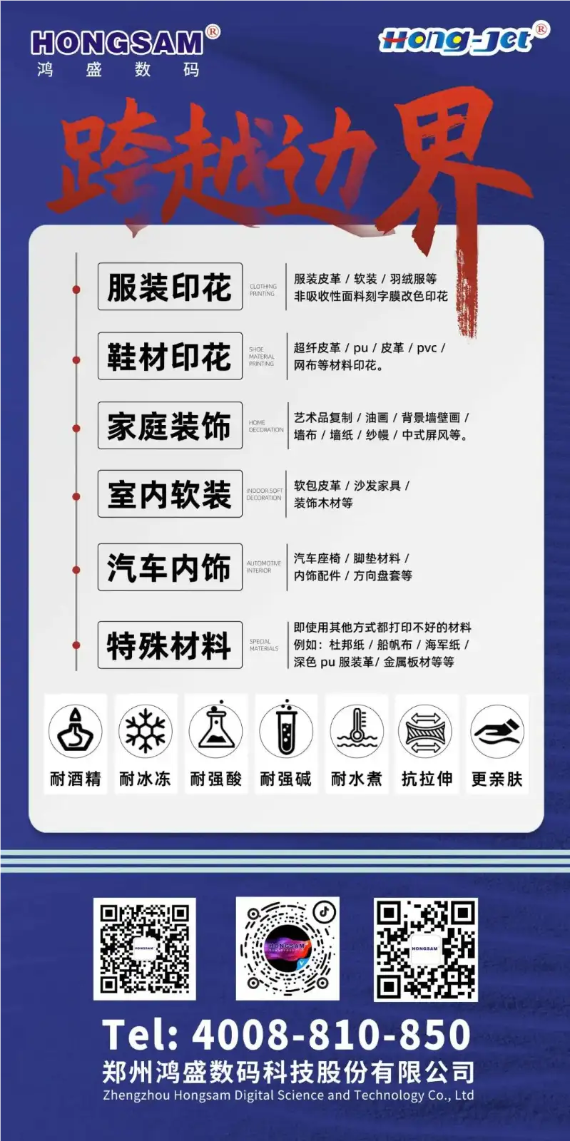 鄭州鴻盛數碼科技股份有限公司成立于2001年,是一家專注噴墨墨水研發、生產、銷售的國家高新技術企業,噴墨行業中國新三板創新層企業(股票代碼430616),公司自成立以來,始終致力于數碼噴墨技術的研究、開發及應用推廣,開發、生產適應數碼噴墨技術進步的功能性、環保型噴墨墨水,并向客戶提供數碼噴墨印刷整體解決方案和服務。