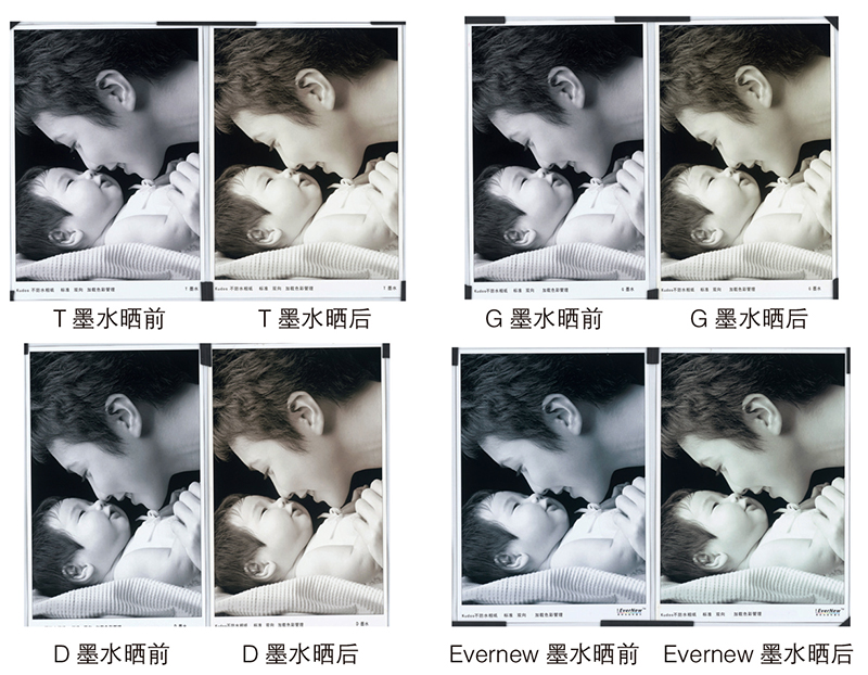 EveNew耐光染料:不僅兼顧了染料墨水的優(yōu)點:顏色鮮艷、色彩再現(xiàn)能力強,穩(wěn)定、貯存性好、造價成本低、墨水流暢性好等;而且還在墨水耐光性上做出了巨大的突破,使原本易受到紫外線、臭氧等因素破壞的染料分子變得更為穩(wěn)定,色彩歷久彌新。耐光水性染料墨水比普通的染料墨水更耐光,更耐臭氧,保存時間更長!